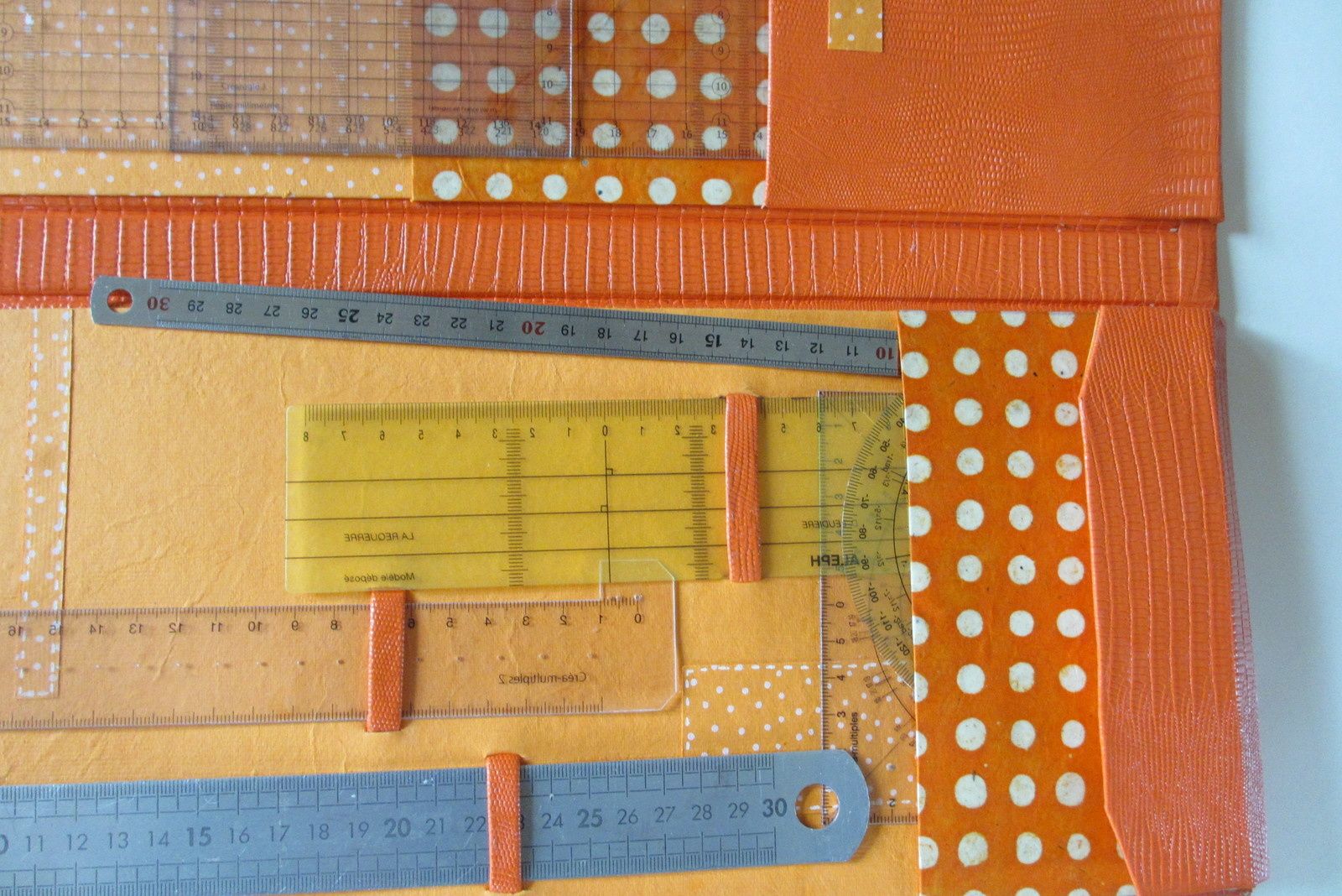 Elle sert à transporter règles et réglet.Une version très colorée,un peu patchwork car j'étais très juste en papier.