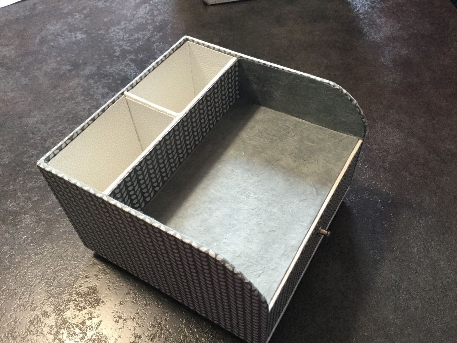 je vous laisse découvrir le nouveau projet du cours de cartonnage du jeudi 12 octobre: Une petite boîte qui servira à ranger vos clefs,stylos, papiers... à bientôt!