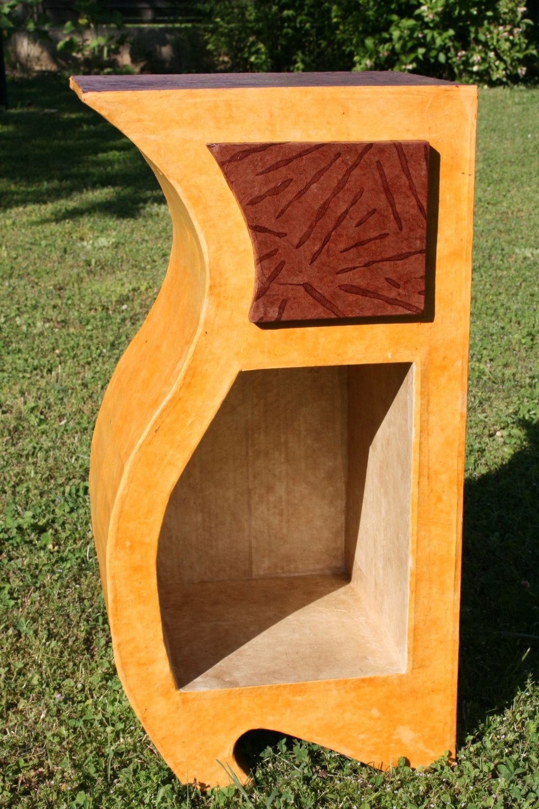 Lors du transfert d'overblog,certaines photos ont disparues,comme celles de ma petite table de nuit en carton que j'aime beaucoup et que je propose généralement comme premier meuble.Celles ci ont été realisées par ma fille Charlotte en stage privatif avec sa maman:nous sommes toutes les deux très contentes du résultat;Le carton est recouvert de papier népalais et j'adore le rendu final...